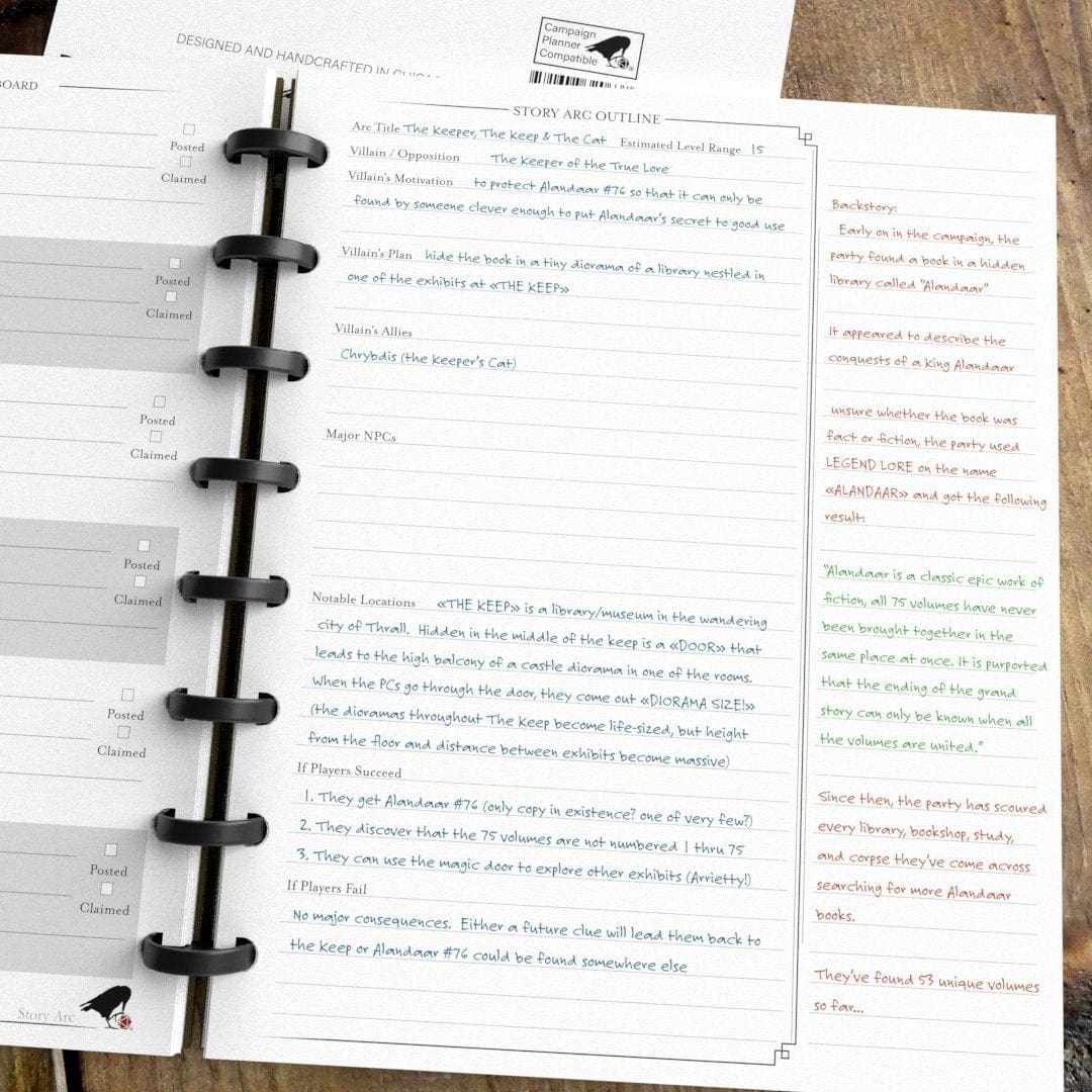 If you’re getting ready to take the reins as Game Master for the first time (or you want to dip your toe into using a discbound notebook to help you plan), the Basic Campaign Planner is an excellent first Planner. This light-weight 70-page notebook comes with a little bit of everything you need to plan and run your first adventure. Do you write left-handed? The reversible covers and ambidextrous page designs make it quick and easy to switch your book from left-bound to right-bound!