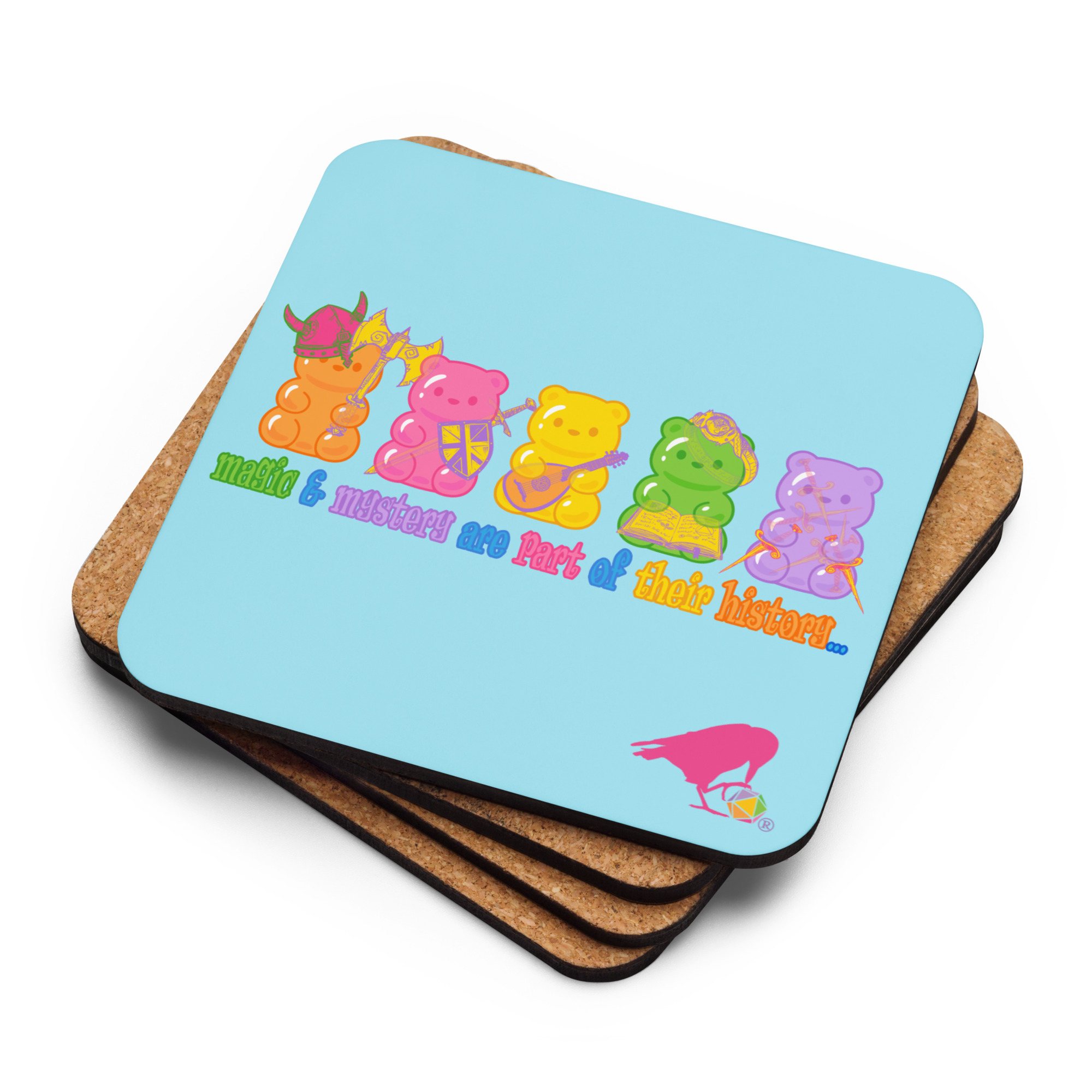 Banish beverage rings from your gaming table with this cork-backed coaster featuring the entire Adventure Bear crew!