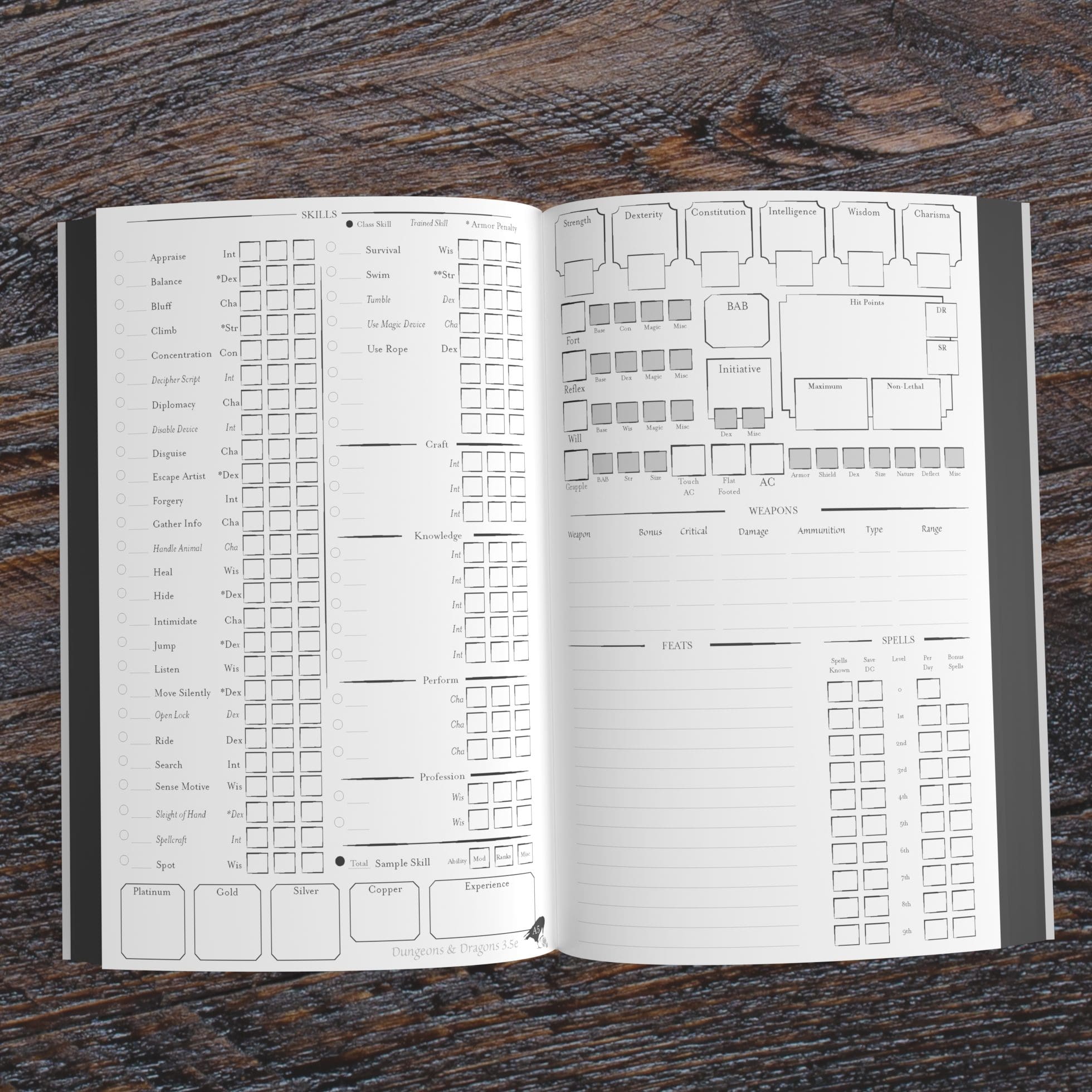 This 100-page A5 paperback Player’s Diary includes everything you need for your next 3.5 Edition Dungeons & Dragons character.